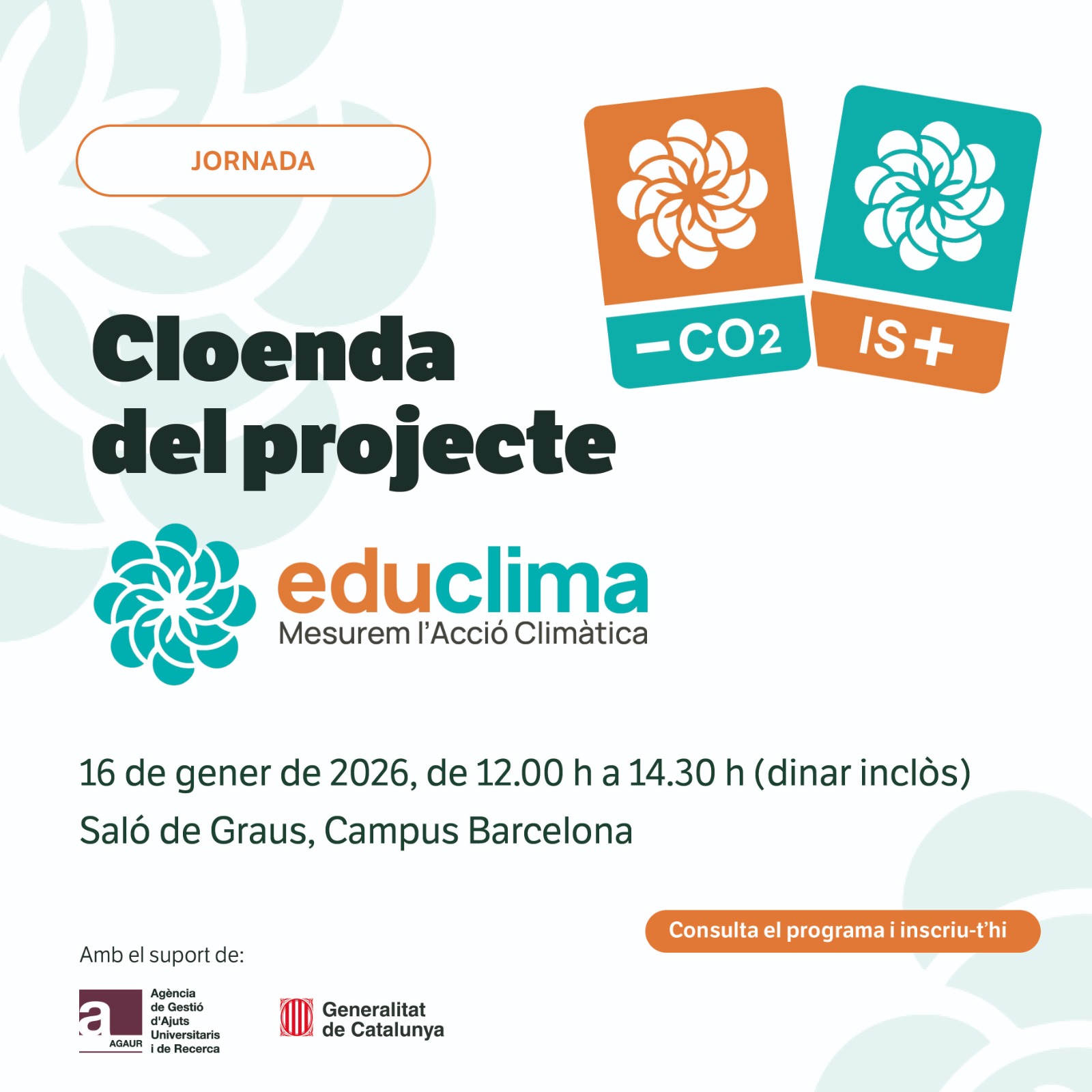👉🏽 Consulta els detalls de la jornada i inscriu-t’hi al formulari següent: https://www.uic.es/ca/agenda/cloenda-del-projecte-educlima